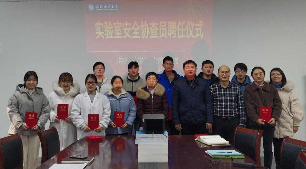 为进一步推进实验室安全管理的常态化,2021年12月30日,海洋科学与水产学院举行了实验室安全协查员聘任仪式,正式聘请15位研究生作为学院实验室日常安全和卫生检查的协查员。聘任仪式由副院长高焕主持,院长徐军田宣读了聘任文件,杨天华书记对各位受聘的协查员在实验室安全管理上的付出表示感谢,告诫大家要勇担使命,完成好学院委托的各项安全检查任务,同时也勉励大家认真做好安全协查员工作,在工作中不断锻炼自己的能力。