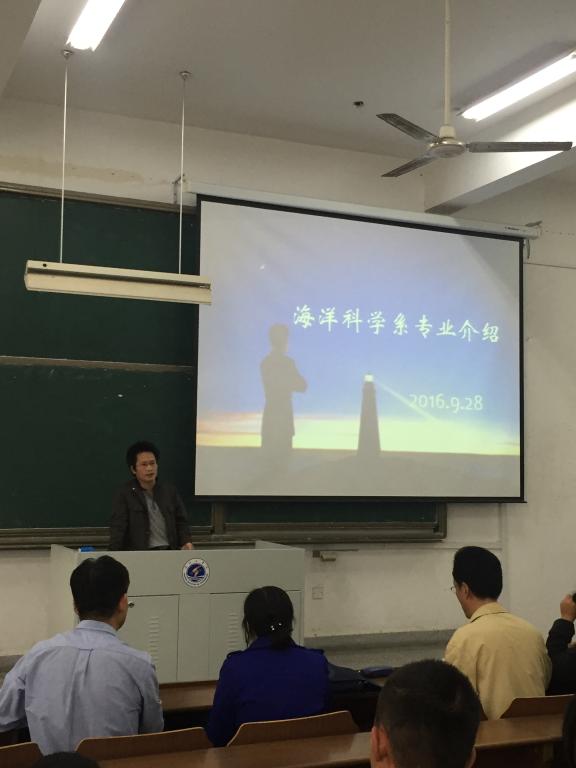 2016年9月28日下午,海洋生命与水产学院海洋科学系2016级新生专业专业教育会议在文通楼A201召开,150人的教室座无虚席,这里有2016级全体新生、老生代表以及海科系的大部分教教师,会议由系副主任吴少杰老师主持。
