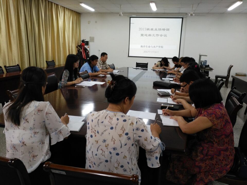 7月6日下午,海洋生命与水产学院在海洋南楼202会议室召开2017级新生班主任培训会,学院党政领导、2017级新生班主任及辅导员参加了此次会议。
