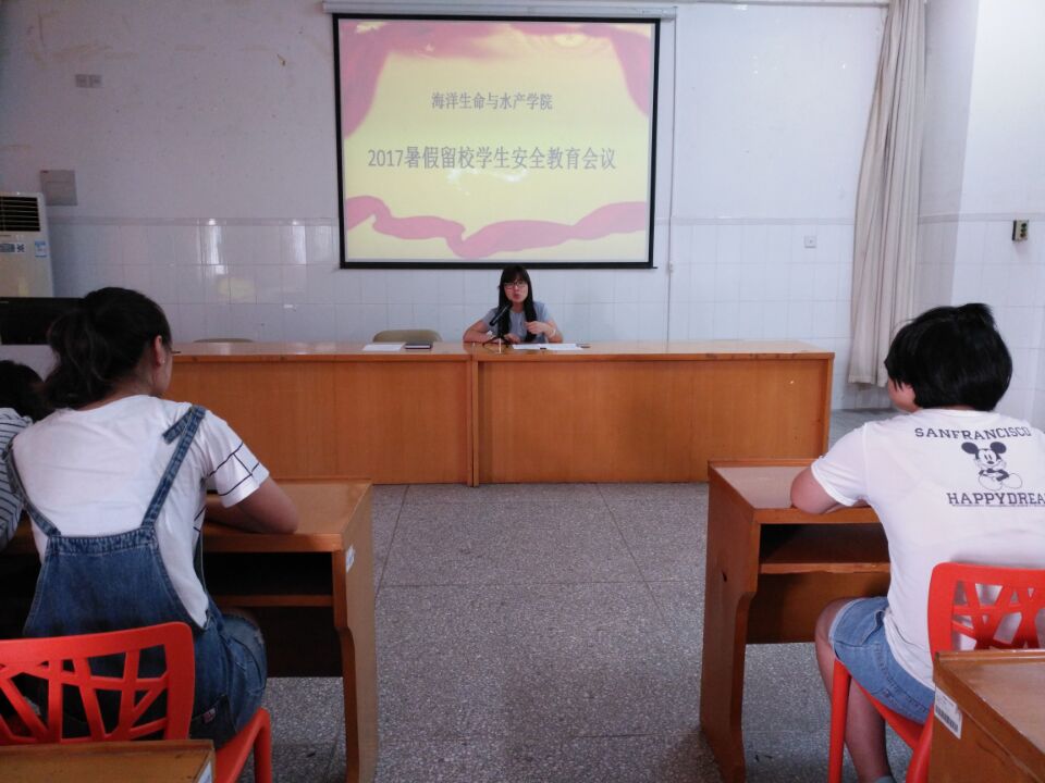 为增强学生安全防范意识,做好暑期留校学生的管理和服务工作,确保学生在校期间度过一个安全、文明的假期。7月8日上午,海洋生命与水产学院辅导员到学生宿舍进行安全检查;下午,学院在海洋南楼202会议室召开2017暑期留校学生安全教育会议。学院党委副书记唐瑶、学工办主任时树奎及暑期留校的学生参加了会议。