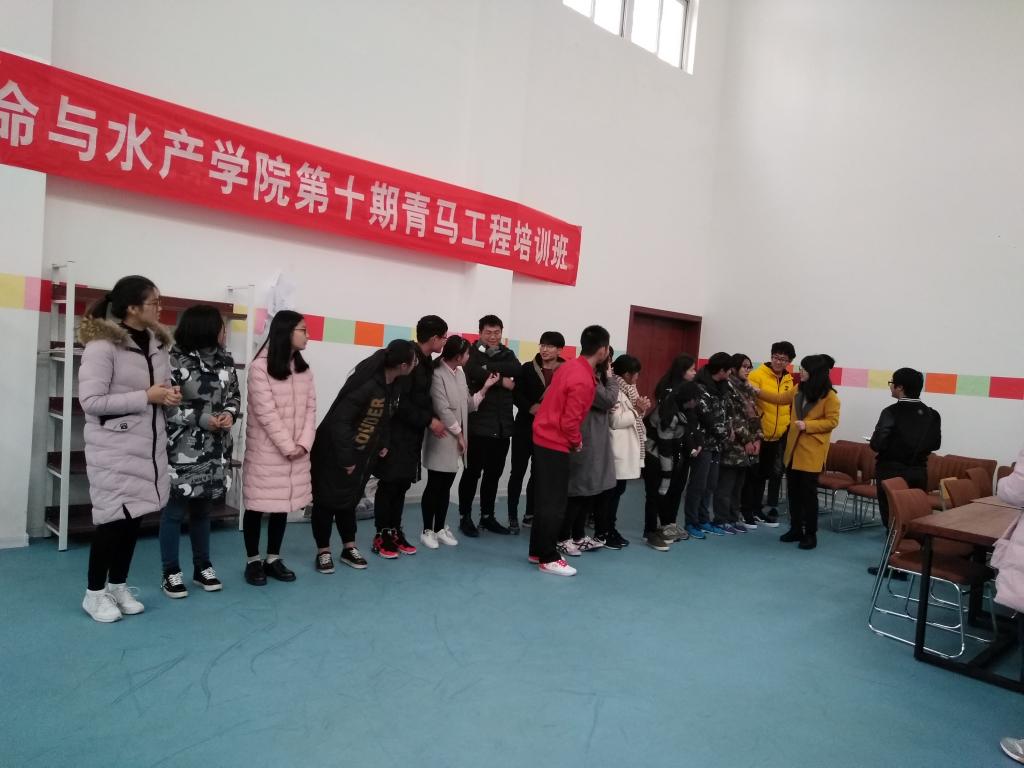 11月29日下午,在素质拓展中心老师和同学们一起进行了青马工程素质拓展活动。活动由海洋生命与水产学院团委副书记王静主持,全体青马学员参加了此次活动。