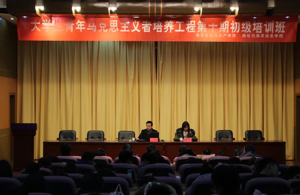 12月7日晚,测绘与海洋信息学院、海洋生命与水产学院在讲堂楼报告厅组织了第十期青马工程初级培训班学生干部专题讲座。校纪委监察处副处长马志同作了题为《学生干部语言艺术》的报告,讲座由海院党委副书记唐瑶主持。