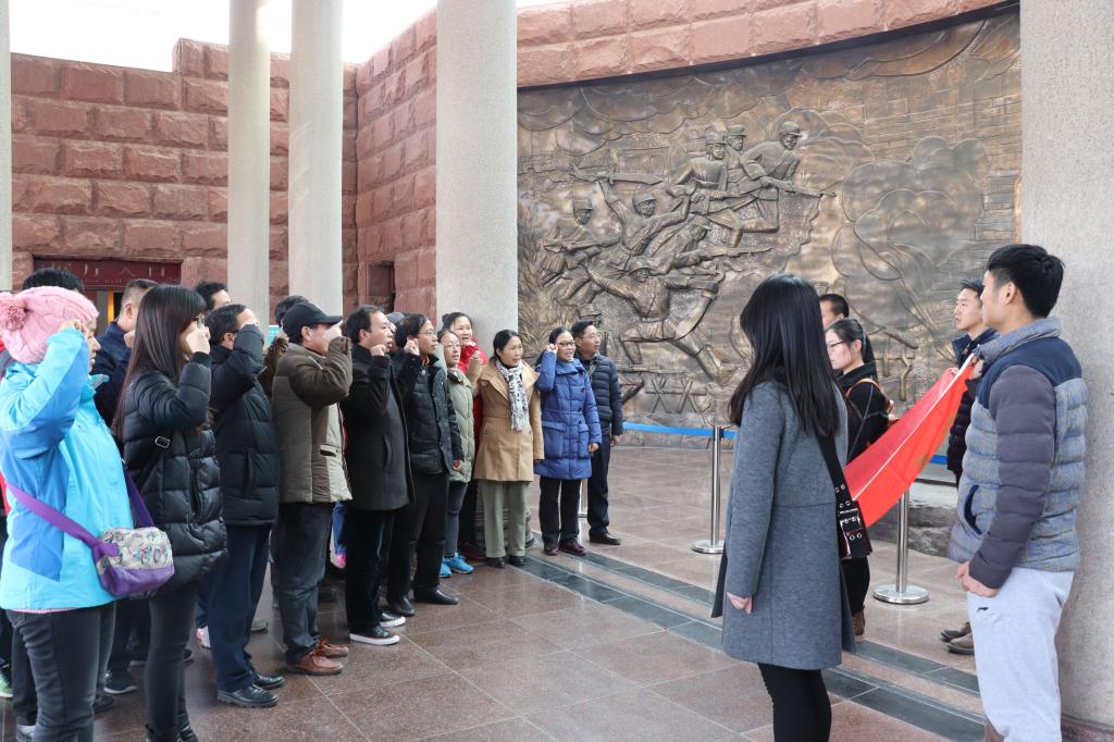 在台儿庄大战纪念馆,教工党员参观了大战时中日双方资料、战斗场景图片、相关实物及书画作品等,了解抗日志士浴血奋战、痛歼日军的历史过程,倾听了先烈们的英勇事迹,追忆了台儿庄大战过程。参观结束后全体党员在纪念馆前重温入党誓词,再次宣誓忠诚,不忘初心,牢记使命,坚定信念,提醒我们每一名共产党员入党的真实初心和许下的铮铮誓言。在铁道游击队纪念园,同志们瞻仰了铁道游击队纪念碑,回顾了铁道游击队抗战历史。