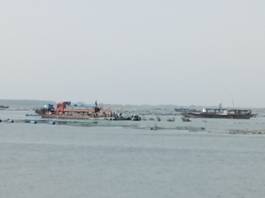 老师们沿骆马湖生态养殖示范园主干道对其生态资源进行考察。沿途的莲藕养殖园中,工人们正在用压力水枪采摘莲藕,此场景给老师们留下了深刻的印象。在养殖区的近岸区域,水草丛生,营养物质丰富;养殖设施齐全现代化。深水湖面上,多艘渔船在进行作业,主要是进行生鲜水产品的捕捞、运输等。