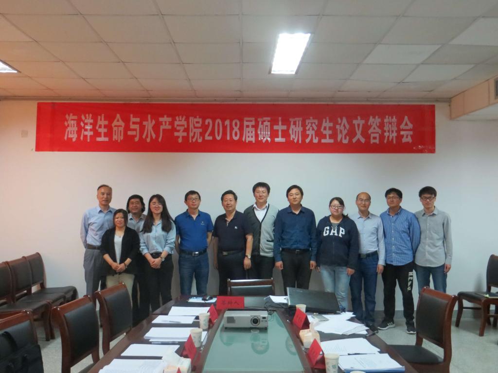 5月23日海洋生命与水产学院顺利完成2018届12名硕士研究生学位论文答辩工作。本次答辩分为三组举行,分别在海洋楼S202、S414会议室和通灌校区至善楼1801室召开答辩会议。