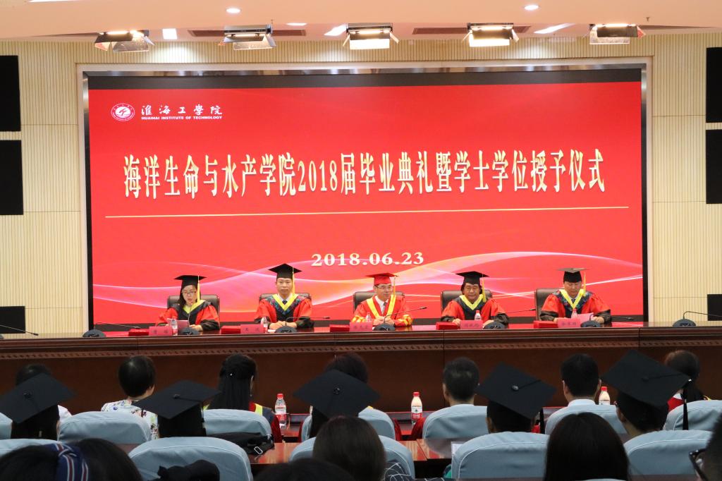 6月23日上午,海洋生命与水产学院在会议中心黄海厅隆重举行2018届毕业典礼暨学位授予仪式。副校长陈先宏、学院党政领导、系主任、毕业班班主任、辅导员及全体毕业生参加了典礼仪式。典礼由学院党委副书记唐瑶主持。