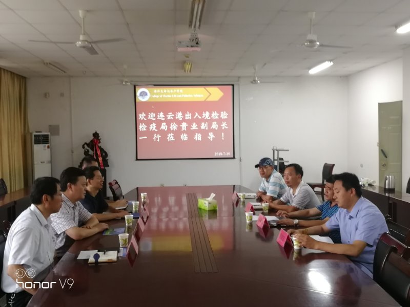 7月10日下午,连云港出入境检验检疫局副局长徐贵业一行4人,来海洋生命与水产学院洽谈科研合作事宜。
