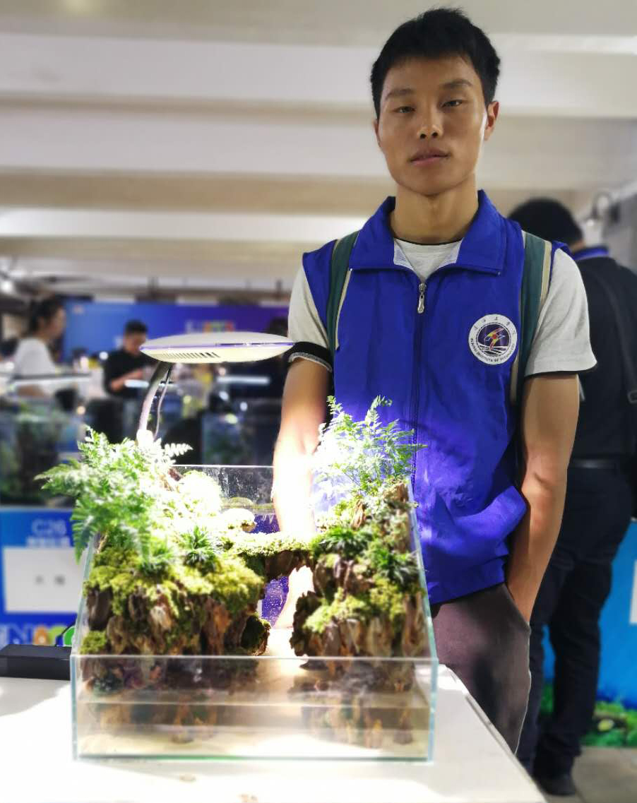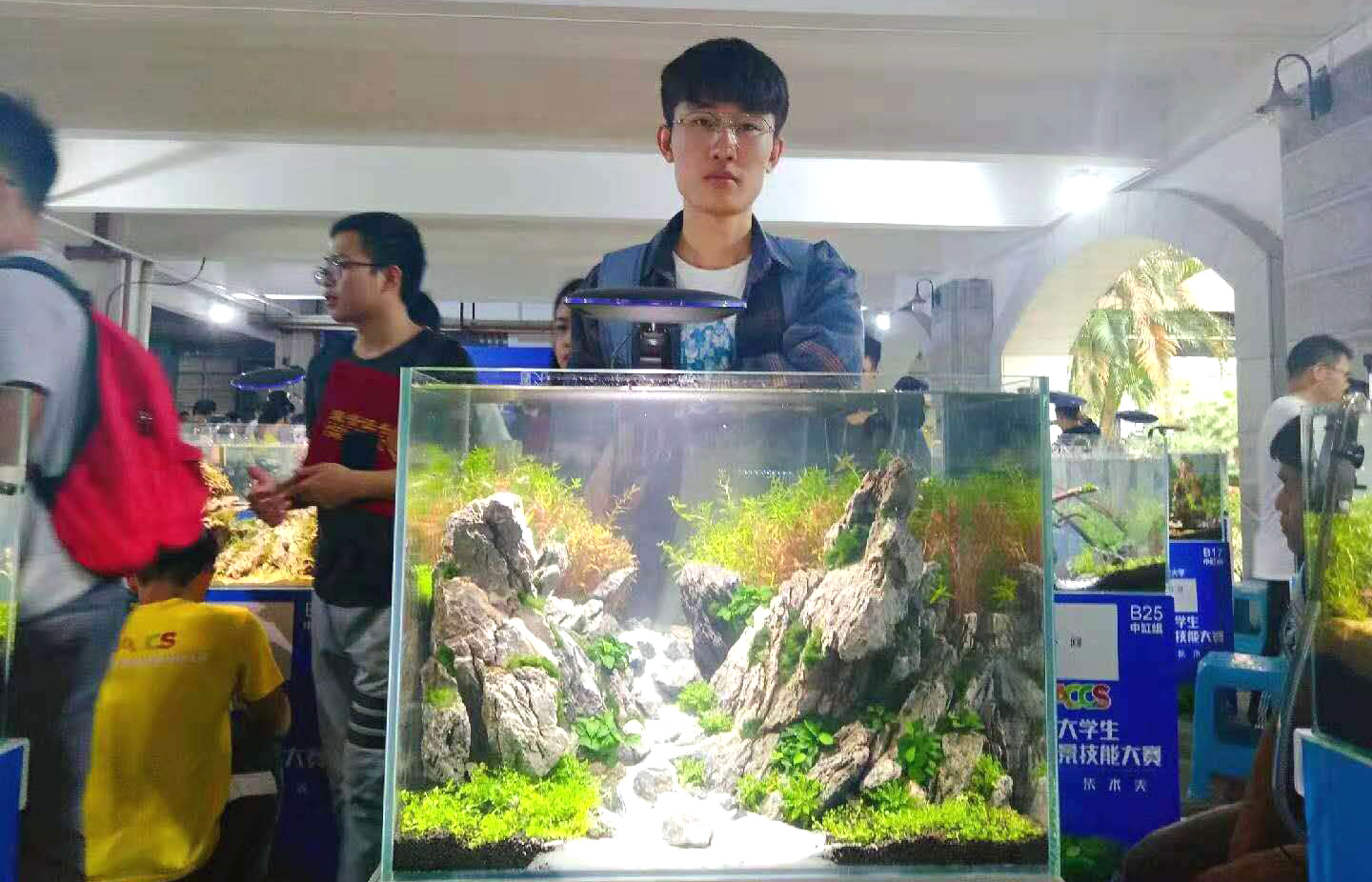 “聚菁英,集水美”,10月12日至15日,第五届全国大学生水族箱造景技能大赛在集美大学举行。我校海洋生命与水产学院程汉良、李信书老师带队、6位同学组成的4个参赛小组,参加了四个组别的所有比赛,获得两个一等奖、一个二等奖、一个三等奖的好成绩。其中,水产161管彬的参赛作品“山涧”获得中缸组一等奖,水产161杜鑫鑫的参赛作品“山中奇缘”获得水陆缸组一等奖,研究生渔业181徐晔、水产161宋杰和水产171周锐东小组的参赛作品获得大缸组二等奖,水产171沈晓雪的作品获得小缸组三等奖。