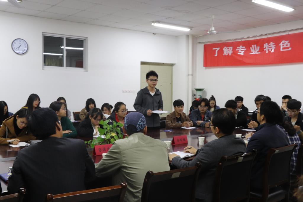 活动伊始,班主任胡广伟简要介绍了生物技术专业同学的基本情况。随后,轻松有趣的师生问答环节便开始了。“什么是生物技术?”“毕业后的就业前景怎么样?”“如何选择自己感兴趣的研究方向?”“对于大学生考证,老师们如何看待?”“出国、考研需要考虑哪些问题?”……同学们将自己的问题一一抛出,教授们结合目前生物研究的前沿领域、生物广泛的研究方向和各自的研究内容,一一为同学们讲解。