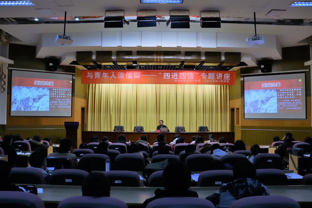 12月5日下午,土木与港海工程学院、海洋生命与水产学院在讲堂楼报告厅组织了第十一期青马工程培训班学生干部专题讲座。计算机工程学院党委副书记、副院长黄吉庆作了题为《与青年人谈信仰》的报告,讲座由海院团委书记王静主持。
