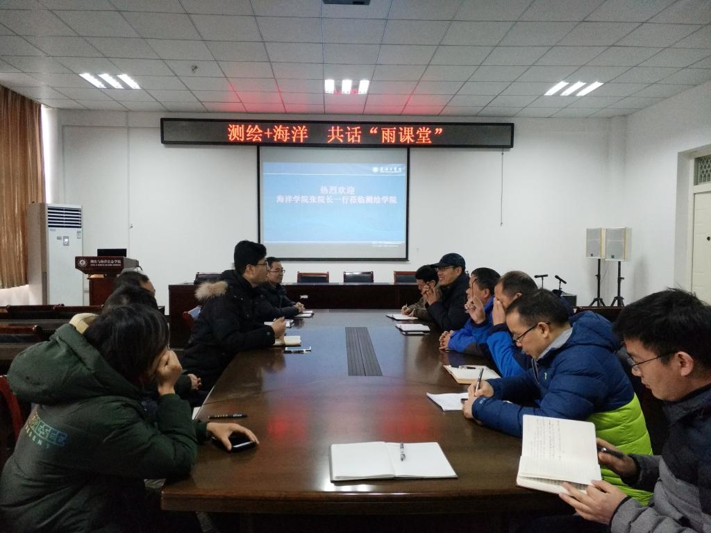 1月3日海洋生命与水产学院张俊杰副院长带领食品与生物工程系骨干教师一行7人到测绘与海洋信息学院学习交流雨课堂。