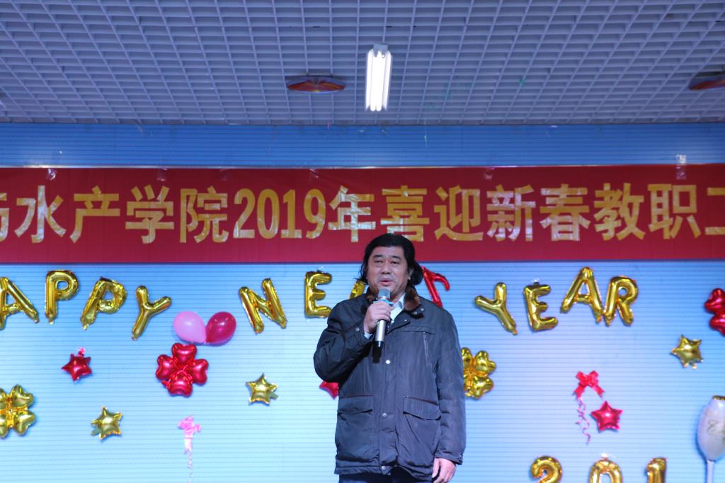 在观众们的热烈期待下,院长阎斌伦致辞,他代表学院向全体教职工表达感谢并致以新年的问候和美好祝福,希望大家在学校创建江苏海洋大学的关键时期,能够不断前行,贡献力量!