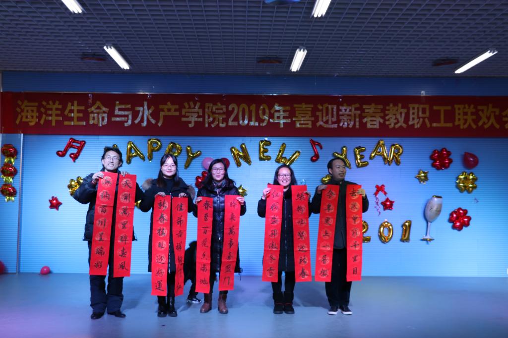 1月18日下午,海洋生命与水产学院2019年喜迎新春教职工联欢会在D区多功能厅隆重举办。学院党政领导与全体教职工一起迎新年、写对联、做游戏、话家常,欢聚一堂,共贺新春。