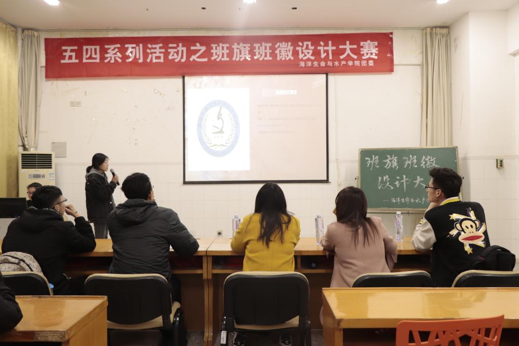 4月11日晚,海洋生命与水产学院在海洋北楼308成功举办了“扬五四精神 展班级风采”为主题的班旗班徽设计大赛,辅导员王静、唐振新、张娟及主席团成员盛扬杰、周文杰担任大赛的评委,18级各班级代表参加比赛。