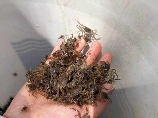 为落实践行生态文明理念,以实际行动改善和保护校园水域生态环境,近日,海洋生命与水产学院水产养殖系先后在静思湖和校园主要河道举行了“河蟹增殖放流活动”。共放流中华绒鳌蟹优质扣蟹5斤,约2万尾,此次放流的蟹苗,预计到今年年底能长到30克至50克,来年秋天均可达到150克以上。河蟹喜食水草、螺蛳和湖中的有机碎屑,素有湖水“清洁工”之称,开展河蟹增殖放流可以充分发挥其生物防污治污的功能,不仅可以增加湖区生物多样性、维持水域生态平衡;而且对抑制湖区过多水草,改善水域生态环境具有较好作用。