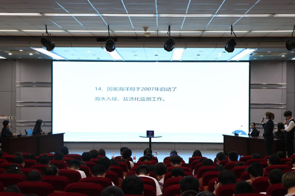5月26日,“江海杯”海洋知识竞赛决赛暨海洋节闭幕式在苍梧校区艺术楼报告厅隆重举办。初赛中脱颖而出的九名选手在这里展开了激烈地角逐。海洋生命与水产学院党委书记王波、党委副书记唐瑶、海科系教师李联泰、赖晓芳及辅导员唐振新、张娟出席了本次活动。