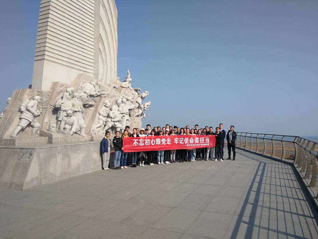 在返回学校的路上,海洋生命与水产学院的党员还前往了小沙东海战纪念碑,瞻仰了在此次战役中牺牲的革命烈士雕像,学习他们的英勇事迹,感受先烈们大无畏的爱国主义精神。