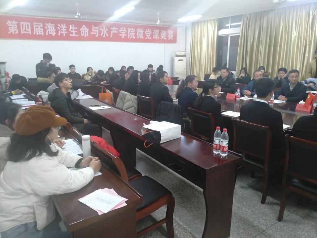 为深入学习贯彻习近平新时代中国特色社会主义思想,领会“不忘初心、牢记使命”主题教育精神,12月18日晚,海洋生命与水产学院于海洋南楼202举办了第四届微党课竞赛。校党委组织部副部长韩振响、学生处副处长陈德翼、学院党委副书记张根友、党政办主任张利民、团委副书记唐振新、学生党员代表以及部分入党积极分子出席了比赛活动。