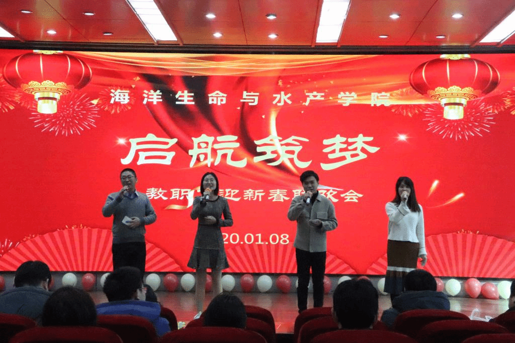 1月8日下午,海洋生命与水产学院在艺术楼报告厅隆重举办了2020年“启航筑梦”迎新春教职工联欢会。学院党政领导与全体教职工一起迎新年、写对联、做游戏、话家常,欢聚一堂,共贺新春。