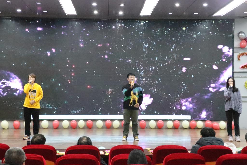 实验中心为大家带来的合唱《我的中国心》慷慨激昂,《酒醉的蝴蝶》愉悦欢快,将联欢活动推向了高潮。研究生的小合唱《当我们一起走过》、夏振强的《梨花又开放》、魏敏的《痴心绝对》等歌曲的精彩演绎深深触动了大家内心的柔软之处……