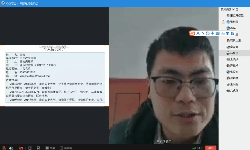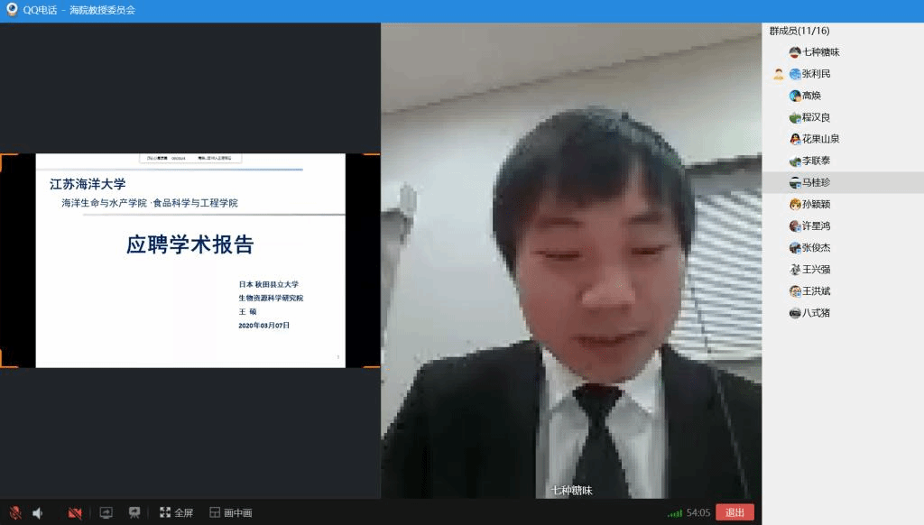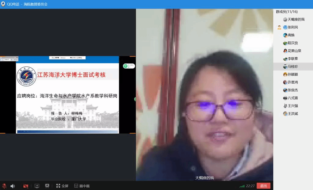 在新型冠状病毒肺炎疫情防控期间,为了进一步加强学院师资队伍建设,贯彻落实学校人才建设“1217计划”,3月7日上午,海洋生命与水产学院组织教授委员会对来自日本秋田县立大学、厦门大学、江南大学及南京农业大学的四位博士进行了远程网络面试。