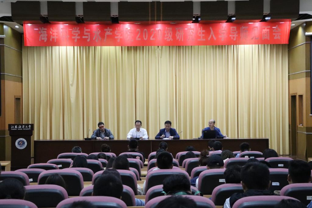 2020年10月10日下午15时,江苏海洋大学海洋科学与水产学院2020级研究生导师见面会暨入学教育在文博楼一楼报告厅举行。学院党委书记王波,院长徐军田,副书记、副院长董志国,副院长高焕,各学科点负责人和导师以及全体2020级研究生参加了本次见面会。会议由王波主持。