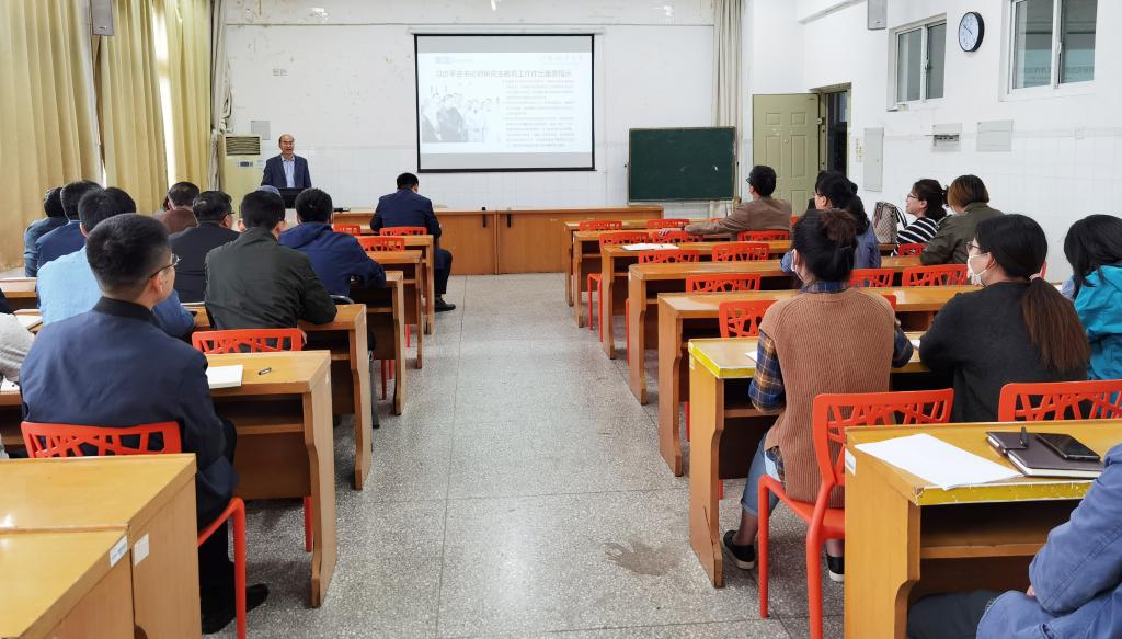 随后,高院长以习近平总书记对研究生教育工作的重要指示和李克强总理对研究生教育工作的批示为切入点,为大家解读了研究生培养方案,导师队伍建设相关文件要求,分享了研究生培养相关对策,并按照研究生培养的时间顺序,对研究生课程学习,研究生专业实践与科研创新和研究生学位论文三阶段的培养管理、学位管理等细节进行详细讲解。