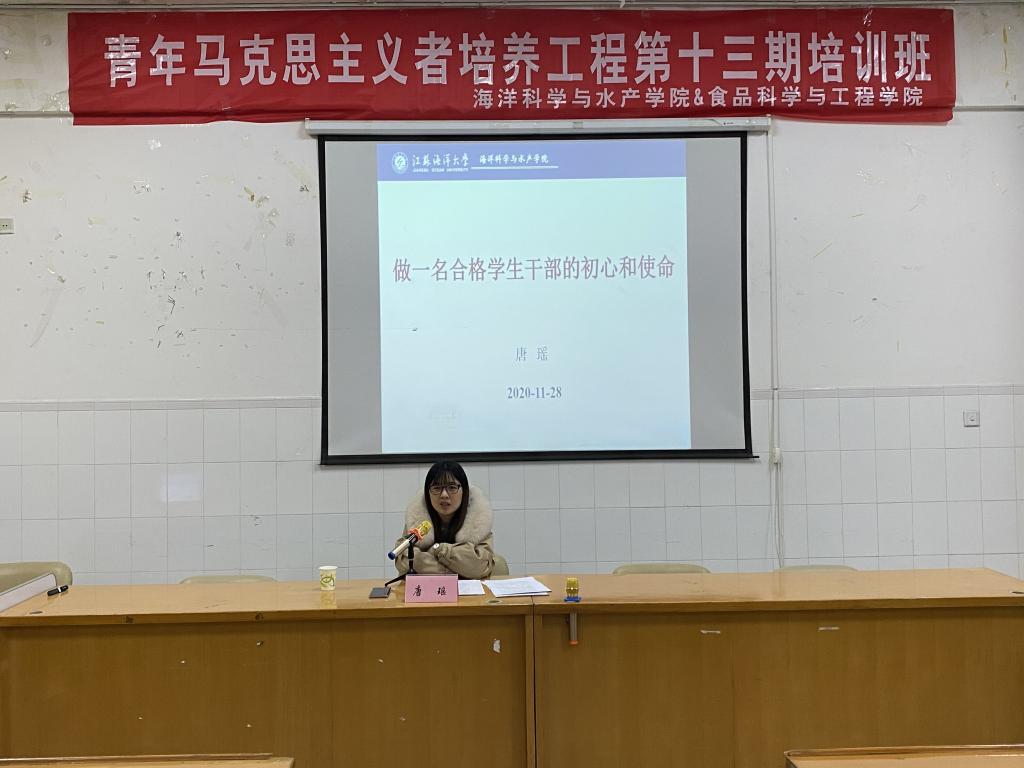 11月28日下午,海洋科学与水产学院第十三期青马工程之做一名合格学生干部的初心与使命专题讲座在海洋北楼308室成功举办。人事处副处长唐瑶作为主讲嘉宾为海院及食品院全体青马学员做了一堂精彩的主题报告。