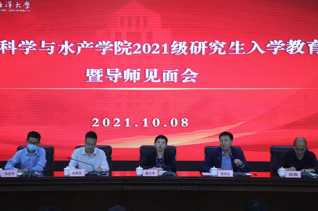 2021年10月8日上午,海洋科学与水产学院2021级研究生入学教育暨导师见面会在会议中心黄海厅举行。学院领导班子全体成员、部分研究生导师、2021级研究生及辅导员参加了本次活动。会议由党委副书记张根友主持。