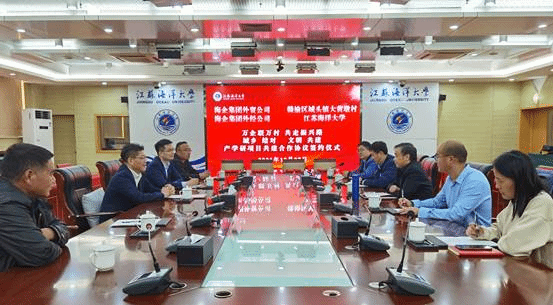 会上,海洋科学与水产学院副院长高焕分别与江苏省对外经贸股份有限公司党总支副书记张强、江苏海外集团对外经济技术合作有限公司办公室主任谢冲、江苏省连云港市赣榆区城头镇大黄墩村党支部书记高峰签署了四方合作协议,同意整合优势资源、共同推进赣榆区城头镇大黄墩村“稻渔”种养示范项目的推进工作。