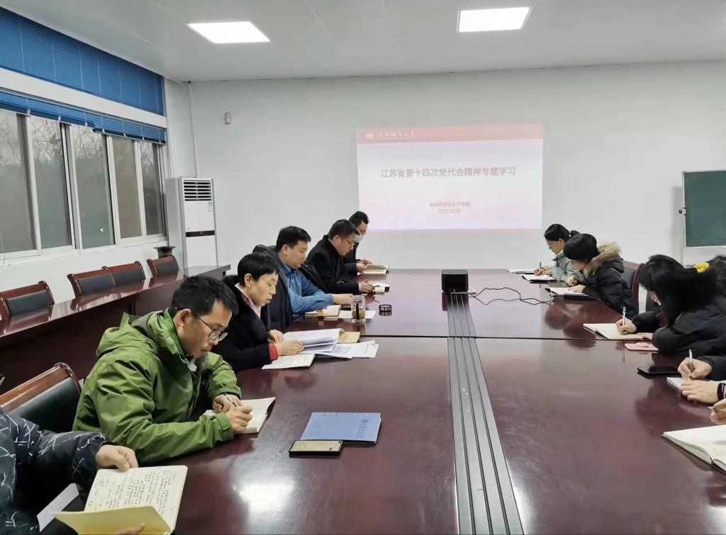 12月22日下午,海洋科学与水产学院党委理论学习中心组开展“江苏省第十四次党代会精神”专题学习会,学院党委班子成员和各党支部书记参加学习,学习会由学院党委书记杨天华主持。