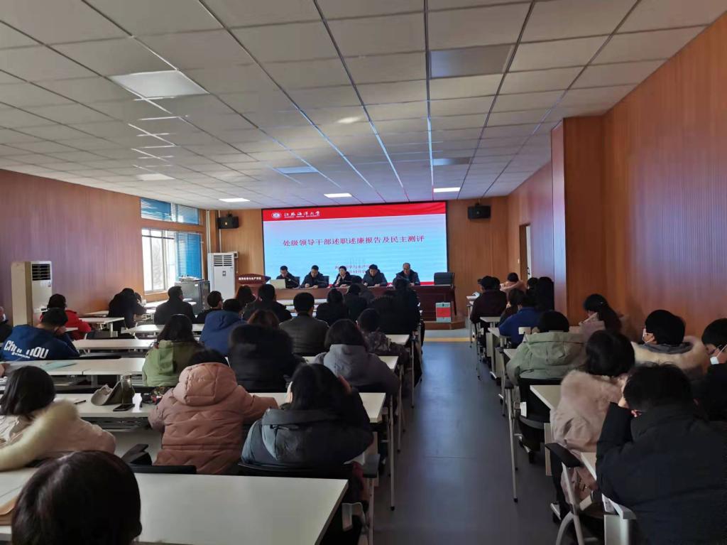 根据学校党委要求,学院领导班子成员依次在会上进行述职述廉报告,参会教职工对学院领导班子及领导班子成员进行了民主测评。