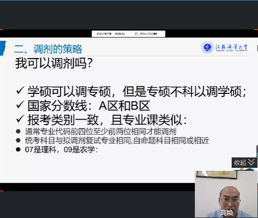 为做好2022届毕业生考研帮扶工作,提高学生考研复试能力,2月23日,海洋科学与水产学院举办了“2022年考研复试线上指导交流会”。本次交流会邀请到学院副院长高焕以及5名2021届优秀考研毕业生担任交流嘉宾,交流会由辅导员韩振主持。