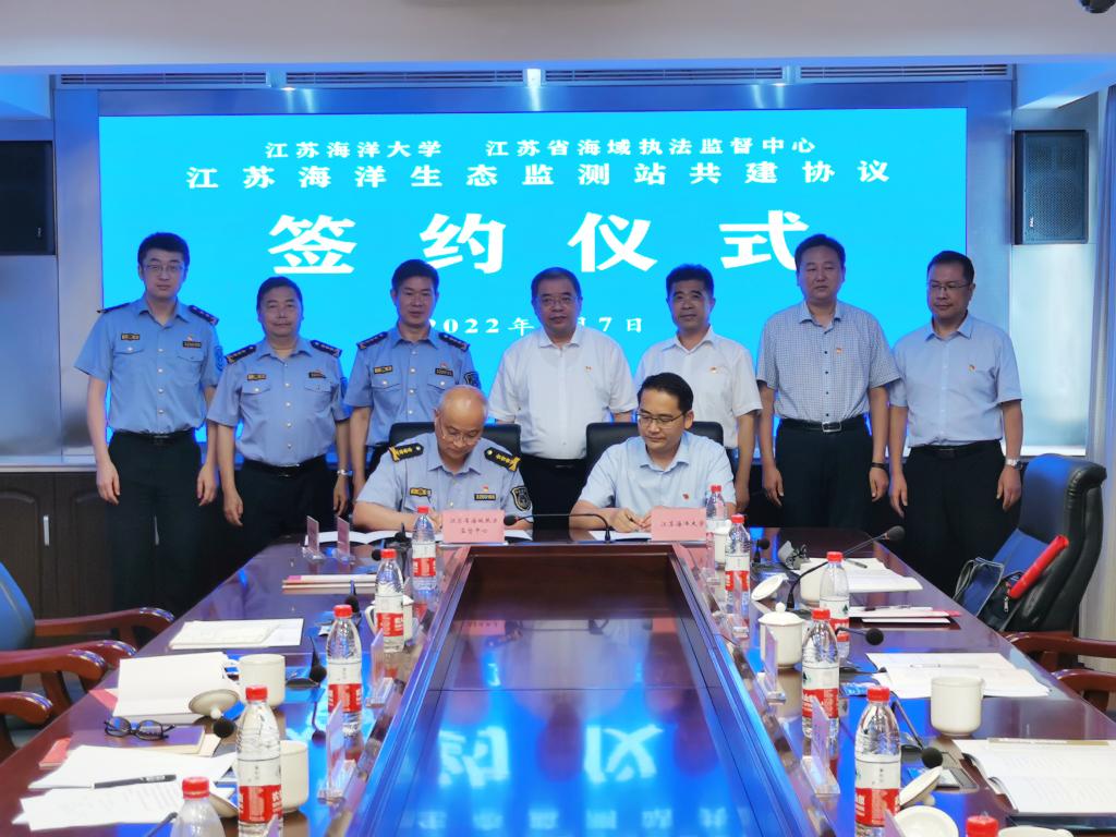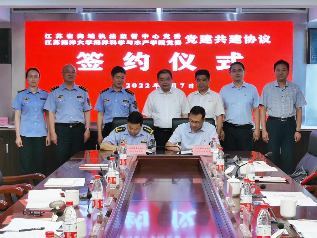 海洋科学与水产学院与江苏省海域执法监督中心近年来在海洋生态保护、海洋文化宣传等领域展开了一系列合作,本次主题党日活动中,双方围绕党建、业务领域相关工作展开座谈交流,就海洋科技研究、人才培养、海洋特色党建等方面开展深度合作达成一致意见,并分别签署党建共建协议、海洋生态监测站共建协议。