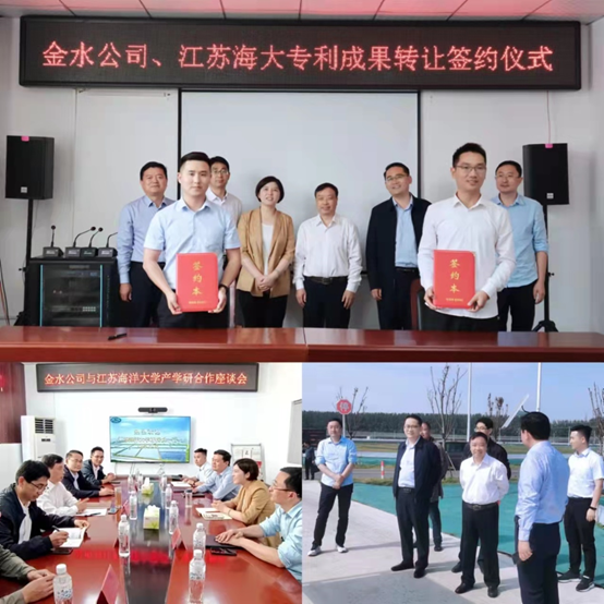 许校长一行首先参观了泗洪现代渔业产业(霸王蟹)融合发展示范区高标准河蟹养殖基地、渔业规划馆。随后在金水公司参加产学研座谈会,校企双方围绕资源优势互补、强化创新协同、服务乡村振兴等内容进行交流,并就进一步合作达成共识。座谈会上,双方签订发明专利成果转让协议,为深入合作奠定基础。