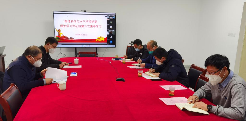 为深入学习贯彻党的二十大精神,12月15日下午,海洋科学与水产学院党委理论学习中心组通过线上线下相结合的方式召开了第六次集中学习会,专题学习党的二十大精神。学院党委委员、党政班子成员和各党支部书记参加学习,校党委书记王自力全程巡学旁听并给予点评和指导,学习会由学院党委书记黄金虎主持。