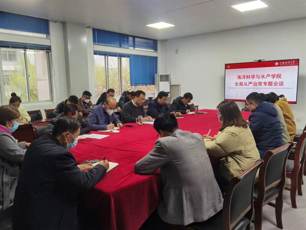 3月22日下午,海洋科学与水产学院在海洋南楼211会议室召开全面从严治党专题会议,学院党政班子成员、院党委委员、各党支部书记、各系(实验中心、办公室、团委)负责人参加会议,会议由学院党委副书记朱小明主持。