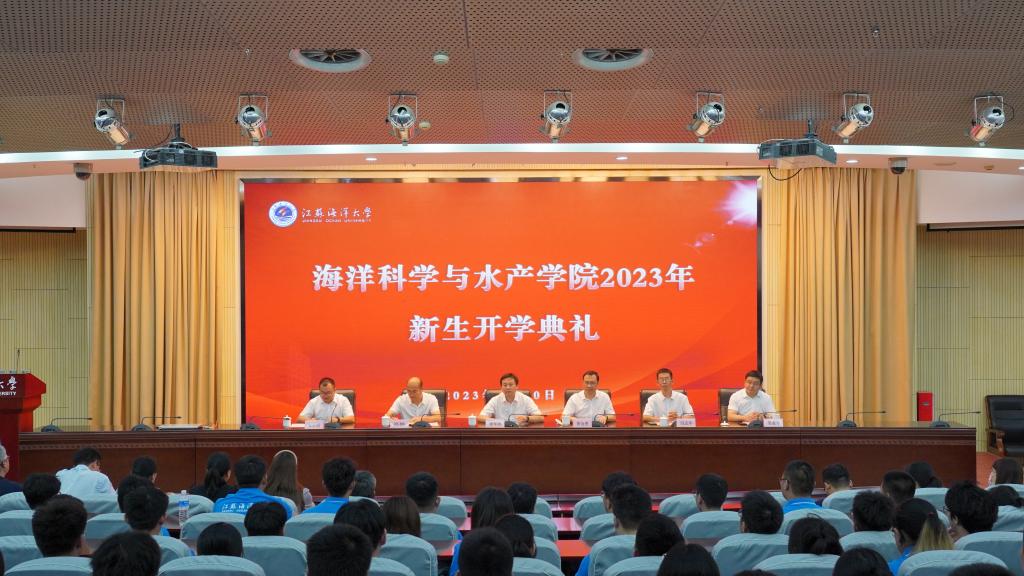 9月10日上午,江苏海洋大学海洋科学与水产学院新生开学典礼在黄海厅隆重举行,副校长兼海洋科学与水产学院院长徐军田,学院党委书记黄金虎,党委副书记朱小明,副院长高焕、冯志华、吴亚平以及各系、科室负责人、新生班主任和2023级全体新生等参加了典礼。