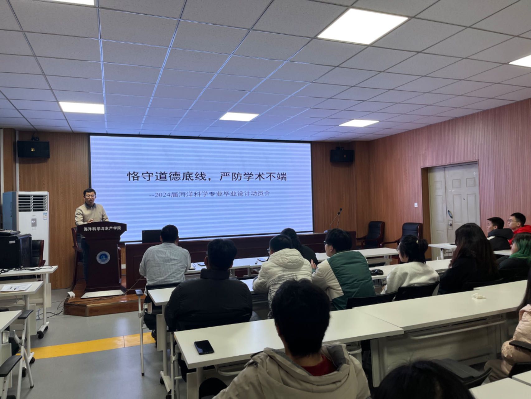 1月9日晚上,海洋科学与水产学院海洋科学系在海洋楼S203会议室召开了“2024届本科生毕业实习与毕业论文动员会”。会议由海洋科学系副主任朱龙主持,参会教师代表包括系支部书记蔡月凤、系主任姬南京以及青年博士董帅帅,海科专业2024届全体学生参加了此次动员会。