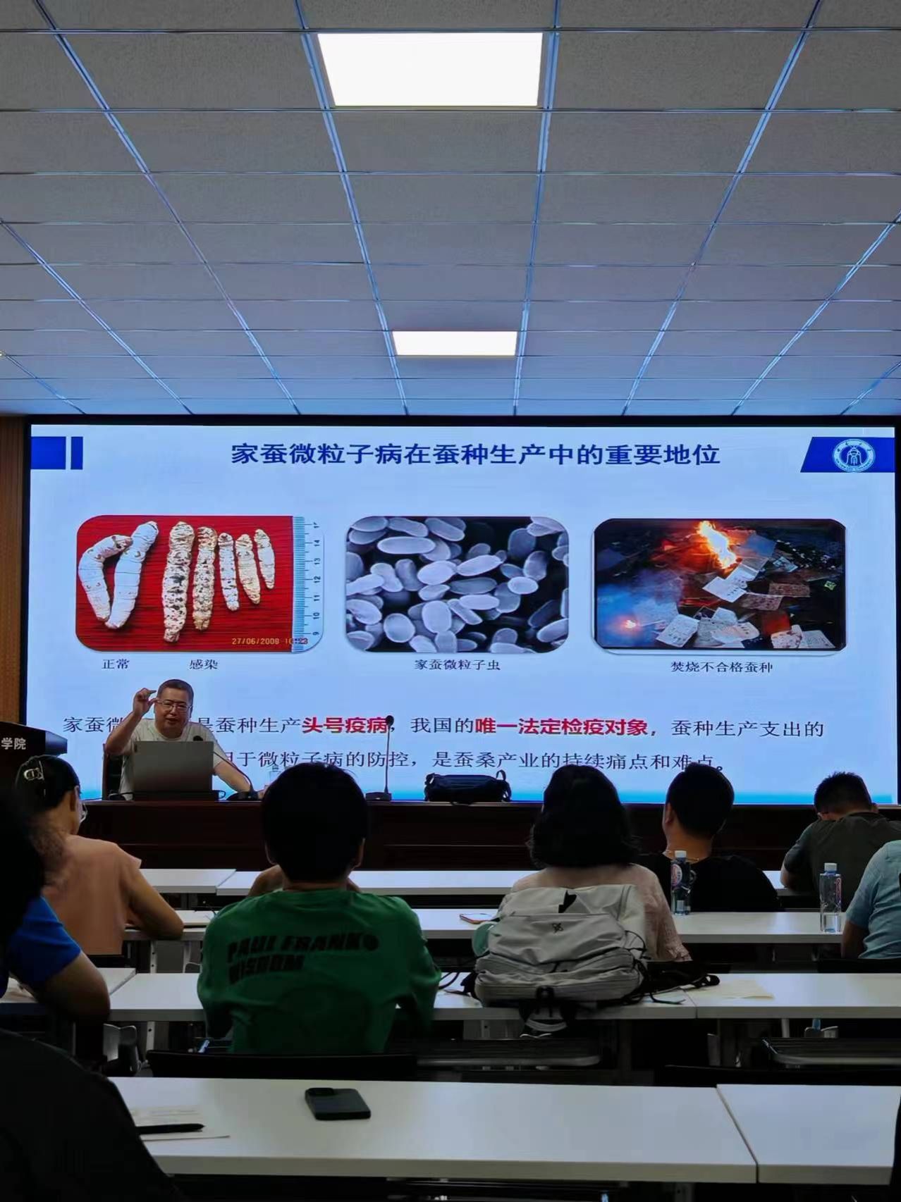 7月17日上午,西南大学家蚕基因组生物学国家重点实验室潘国庆研究员应邀到在海洋科学与水产学院会议室作了题为“单细胞生命的智慧:微孢子虫的故事”的学术报告。报告由海洋科学与水产学院副院长高焕主持。“创新引领 智慧兴渔”2024年江苏省研究生暑期学校全体学生、海洋科学与水产学院师生共60余人参加了报告会。