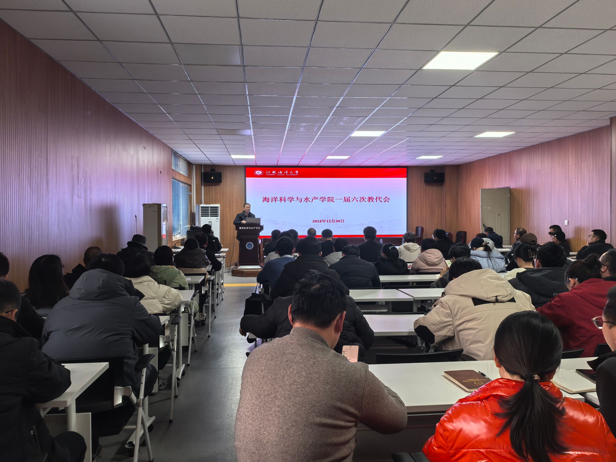 12月30日下午,海洋科学与水产学院召开一届六次教代会,学院党政班子成员、全体教职工参加会议,会议由副院长冯志华主持。