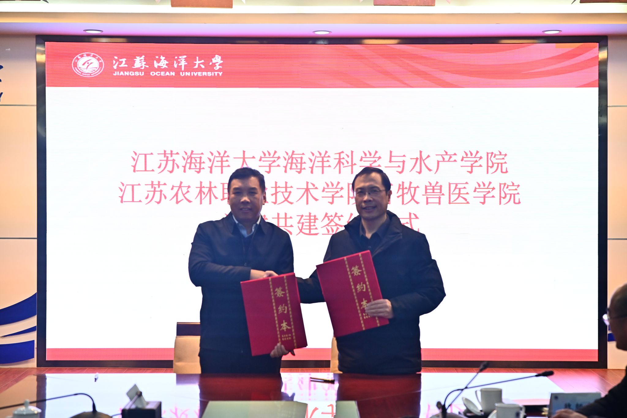 随后,黄金虎、刘庆新分别代表海洋科学与水产学院党委和畜牧兽医学院党总支签订了党建共建协议。