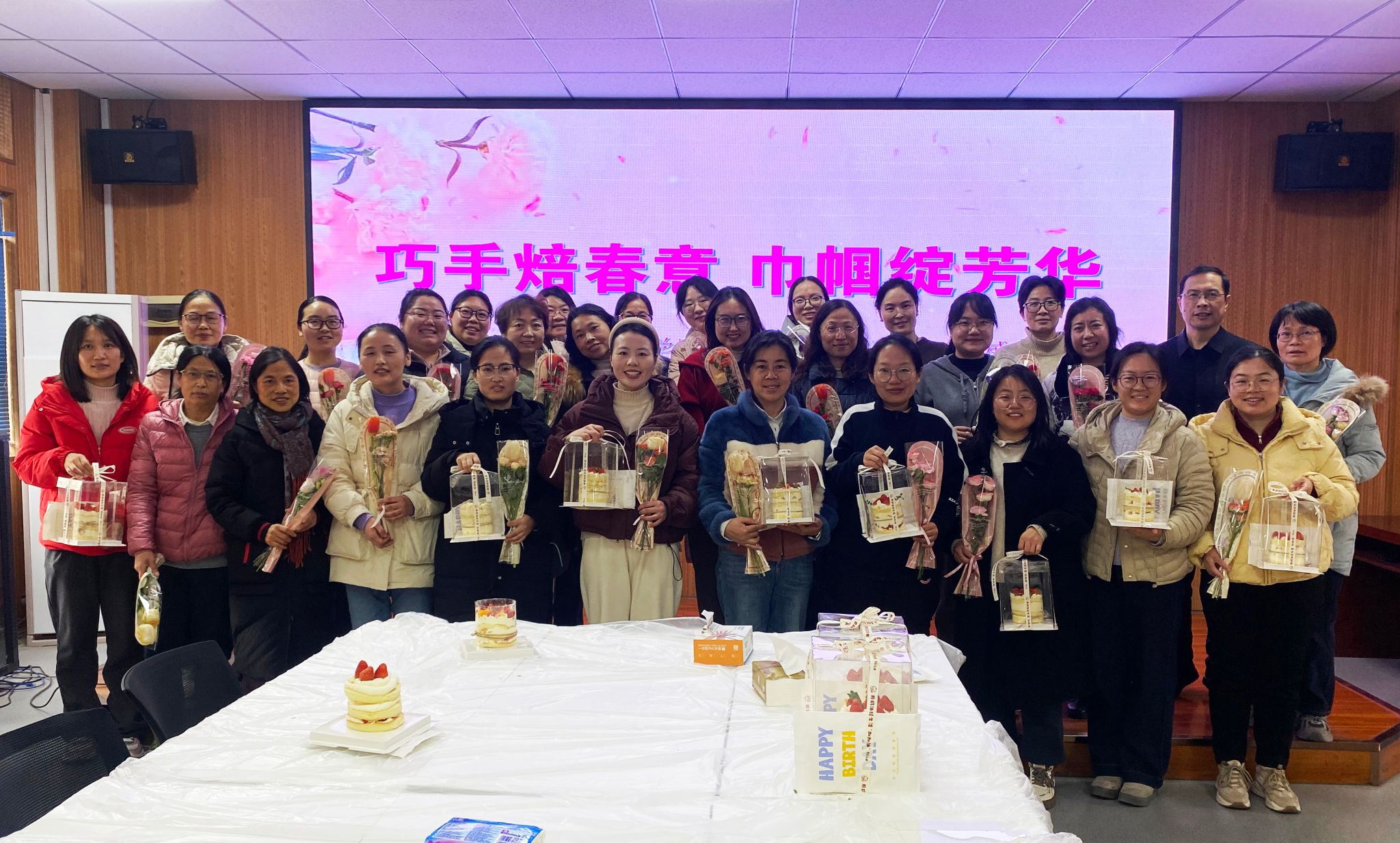 随后,在专业烘焙师的指导下,女职工们纷纷化身“巧手烘焙师”,充分发挥创意和想象力,亲手制作属于自己的节日蛋糕:从蛋糕胚的涂抹到奶油的裱花,从水果的摆放到装饰的设计,每一步都充满了乐趣与挑战……大家不时交流心得、分享成果,现场气氛热烈而温馨。经过一个多小时的精心制作,一个个独具匠心的蛋糕作品陆续完成。大家纷纷拍照留念,记录下这美好的瞬间。大家纷纷表示,此次活动不仅让她们在忙碌的工作之余放松了心情,还增进了同事之间的交流与友谊,感受到了学院对女职工的关怀与尊重。