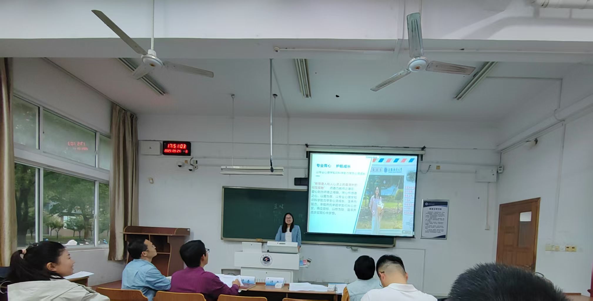 为积极响应“大力弘扬教育家精神,加快建设教育强国”号召,加强教师师德师风建设,引导教师树立正确的教育观、人才观,增强教师教书育人、以身立教的责任感和使命感,9月24日下午,学院在文通楼C114举办师德师风优秀个人事迹宣讲会,2024年度师德师风考核优秀教师——马晓娜作题为“专业育心,护航成长”的专题报告会,以期通过“身边人讲身边事,身边事教身边人”的形式,激励广大教师学师德典型、讲师德故事、悟师德真谛、践师德品行,推动我校师德师风建设。