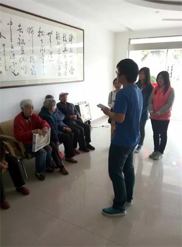 志愿者们由学院团委实践部同学带领进入敬老院,同学们在送去爱心的同时,还纷纷带去了水果以及自己精心准备的小节目。大家用自己的热情和真诚为老人们表演才艺,陪老人们聊天、说笑,听老人们讲述他们的生活经历等等。“最让我们感动的是老奶奶的一句:‘你们来就好了,下次不要带东西,东西留着自己吃,看看我们就好。’这包含了老人们多少的心声与情感。这次活动,我们大家最大收获的不是掌声,而是老人脸上的微笑。”团支书说道。