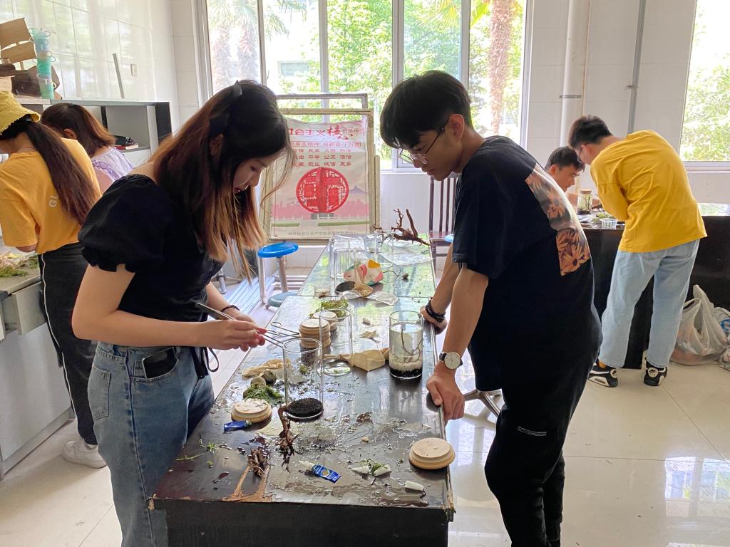 为了培养学生对造景的兴趣以及提高学生的动手能力,5月22日下午两点,由实践部主办的“DIY瓶子里的海底世界” 微型生态瓶制作活动于海洋南楼116室顺利举办。