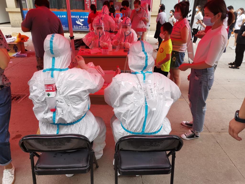 在家中闲暇之余,薛栋听说前进社区急需志愿者,便报名参加。之后,他便一直留在前进社区帮忙维护检测和疫苗注射现场的秩序并采集核酸检测人员的信息。