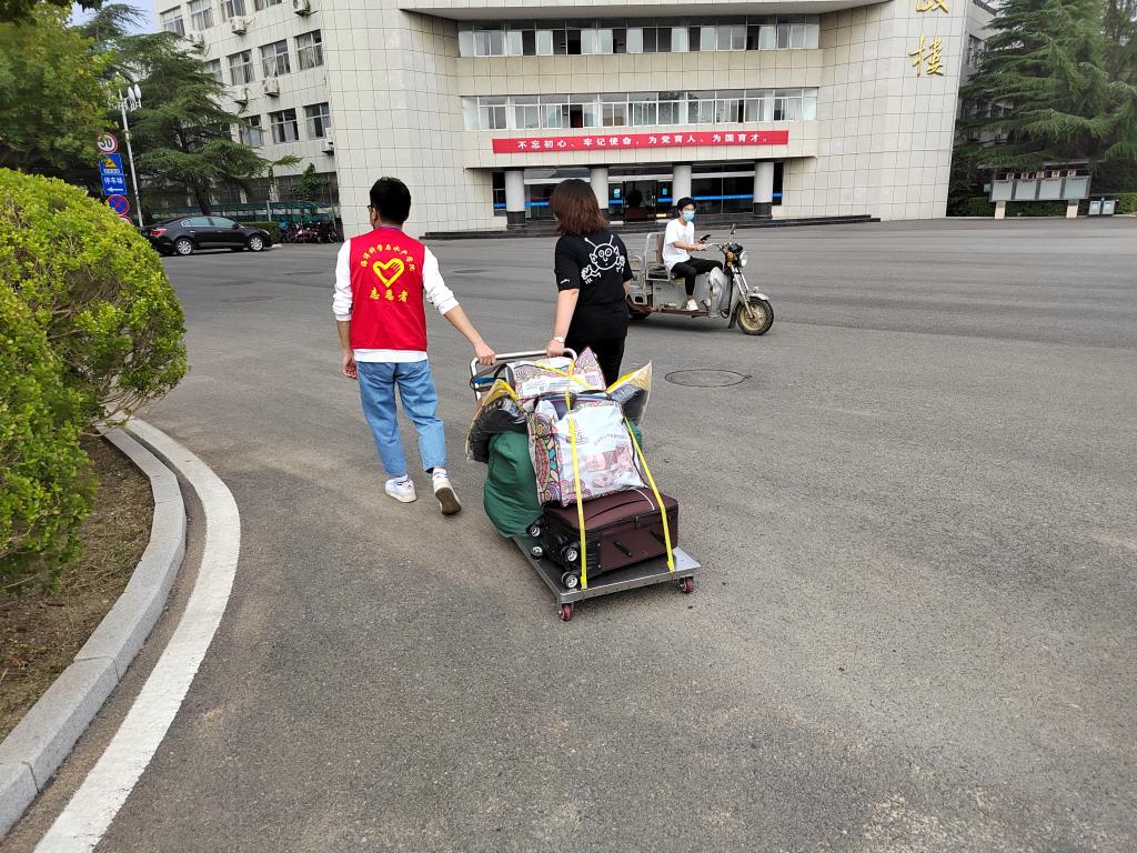 9月17日上午,学生纷纷返校,学院组织学生党员志愿者分别于1号门、4号门协助做好学生的安全防护工作,严格按照测体温,查验身份信息、健康码和通行码等流程做好学生到校签到工作,同步做好防诈骗主题宣传,让返校学生关注“防骗金钟罩”公众号,提高安全防护意识,为创造安全的校园环境提供了有力的保障。与此同时,志愿者也为返校学生提供贴心的行李搬运服务,切实减轻返校学生的行李搬运压力。