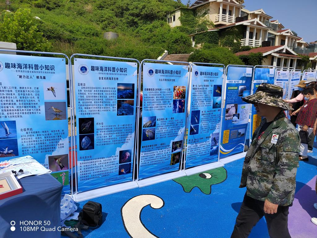海洋科学与水产学院作为活动主办方之一承办连岛大沙湾“海洋科普展”部分活动,学院发挥专业优势,通过科普图文、生物标本、创意文创等展出,让社会大众了解海洋生态保护、海洋生物多样性、海洋生态灾害治理等海洋知识。