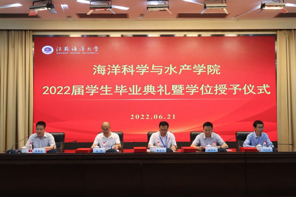 又一年骄阳正好,又一年毕业离别。6月21日上午,江苏海洋大学海洋科学与水产学院2022年学生毕业典礼暨学位授予仪式在会议中心黄海厅举行。学院党政领导班子成员,各个系主任,支部书记,院学位委员会委员,毕业班班主任,教师代表,辅导员及全体研究生、本科生毕业生。典礼由院党委副书记张根友主持。